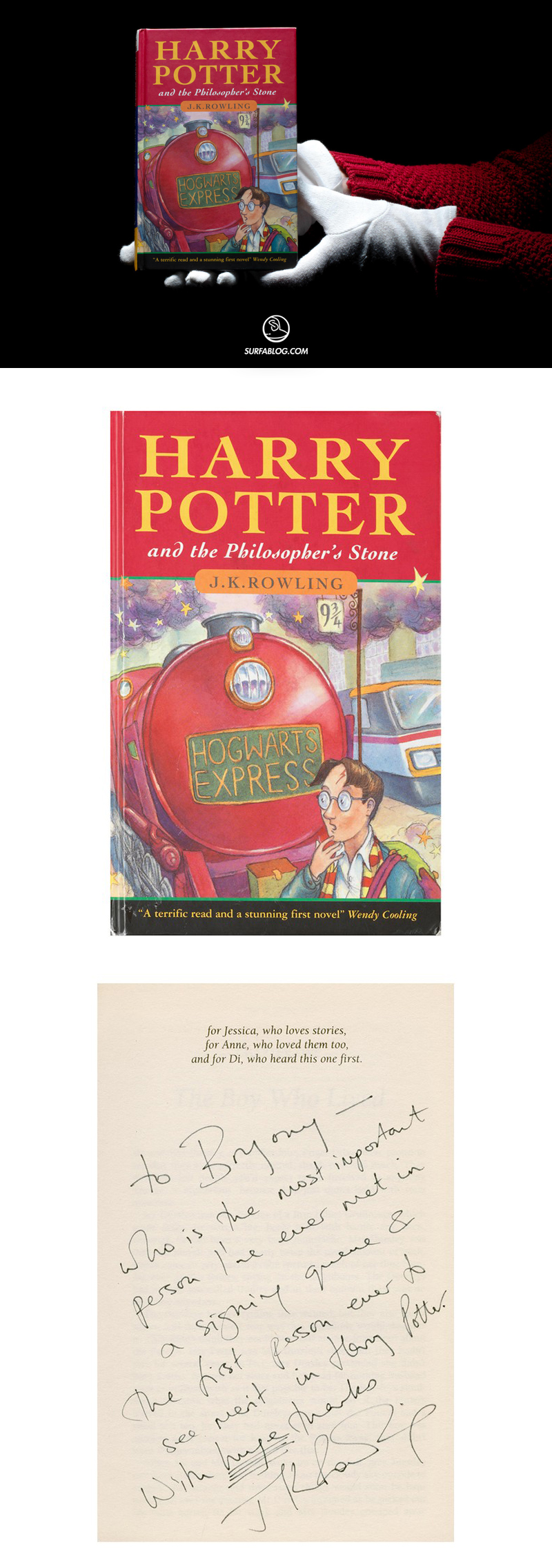 Se nel 2007, alcune di queste copie, erano state vendute per 9.000 £, è di ieri la notizia che una copia della prima edizione di “Harry Potter E La Pietra Filosofale”, appartenuta a Bryony Evens, è stata venduta all’asta per 118.000 £, pari a 152.000 $.