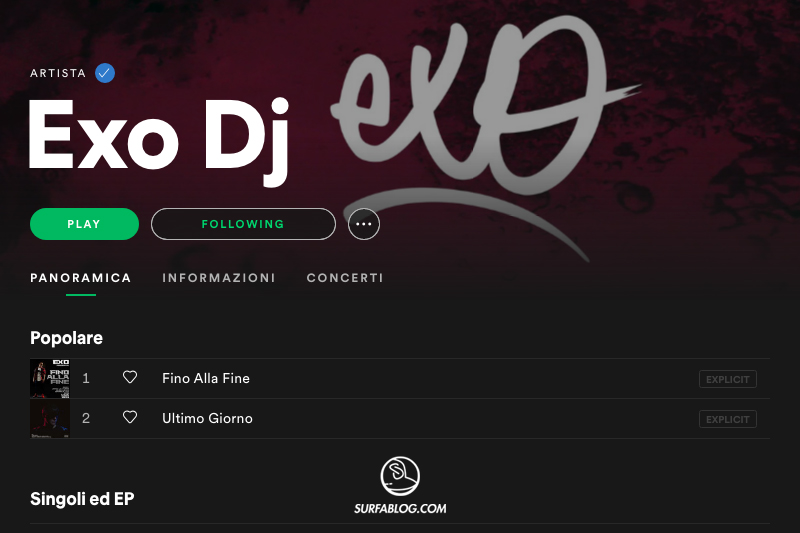 EXO DJ: PAGINA DI SPOTIFY VERIFICATA