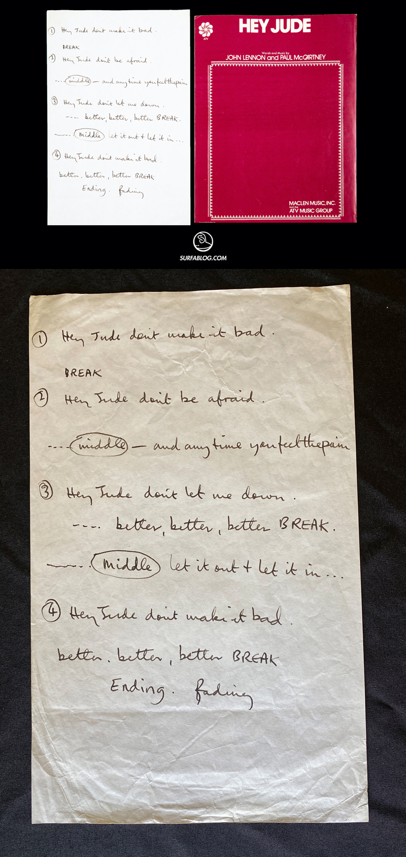 Il testo di “Hey Jude”, scritto a mano da Paul McCartney, è stato venduto all’asta per 910.000 $.