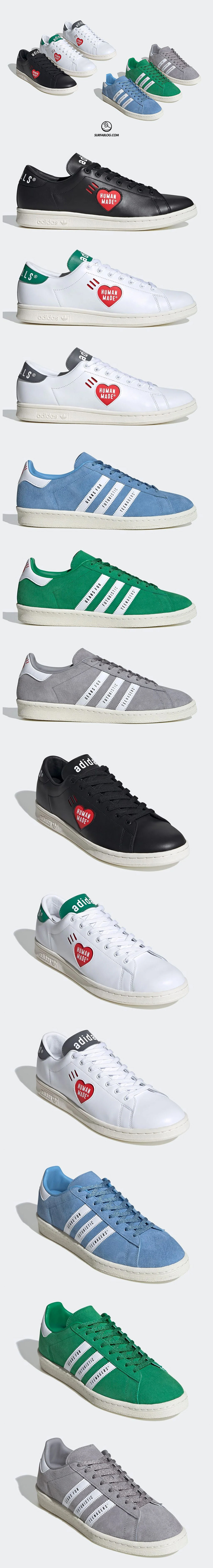 La capsule è composta da 3 adidas Stan Smith (Black/Black, White/Green, White/Grey) e da 3 adidas Campus (Blue, Green, Grey).