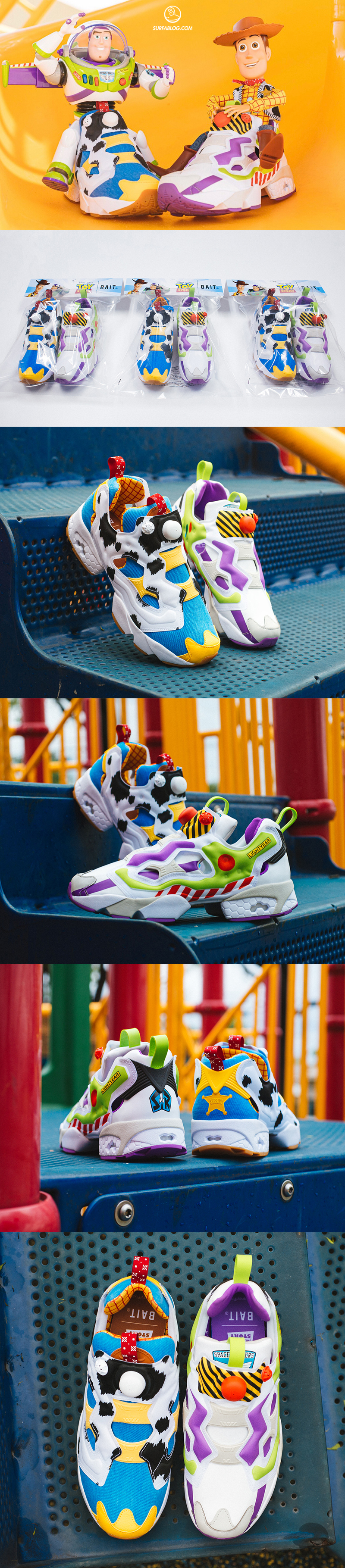 Le due scarpe sono ispirate rispettivamente a Woody e a Buzz Lightyear. Saranno in vendita esclusivamente online presso il sito di BAIT con modalità raffle. Prezzo: 200 $ l’una.