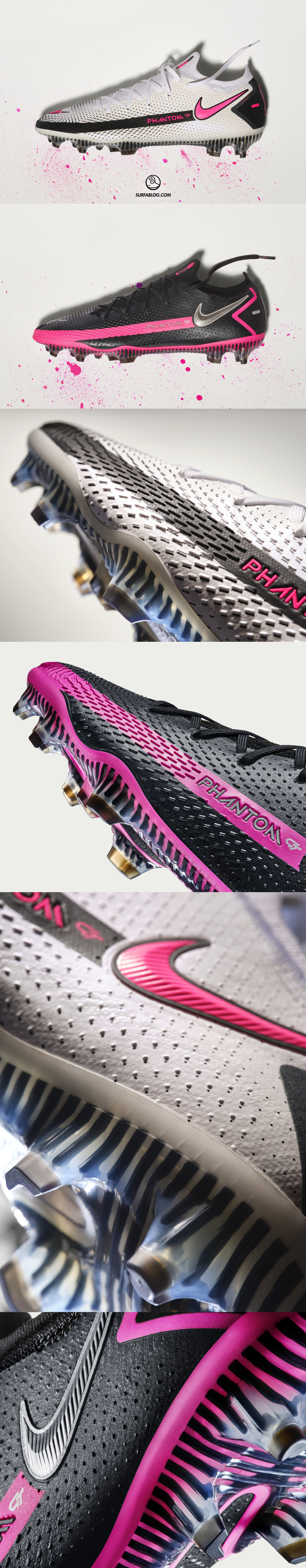 Il design della Nike Phantom GT (Generative Texture), ha preso in considerazione un insieme di dati digitali per creare una scarpa costruita per aiutare il giocatore ad avere una sensibilità perfetta della palla ed esprimere quindi le proprie abilità creative.