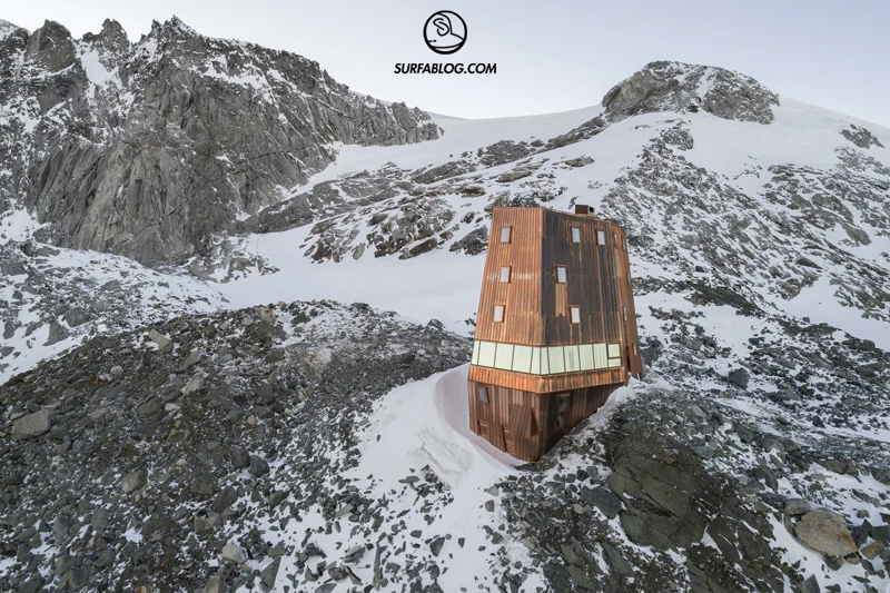 Il rifugio è stato progettato per creare il minimo ingombro possibile e per resistere ai forti venti. Le grandi vetrate offrono una vista panoramica a 360 gradi.