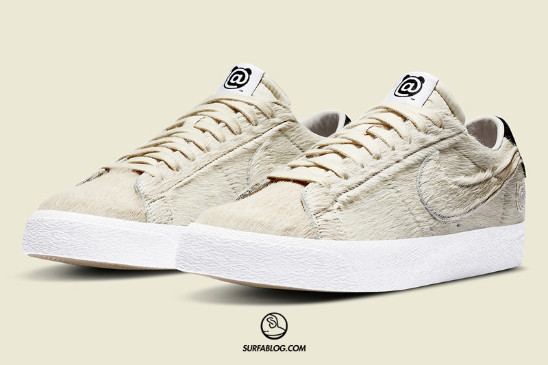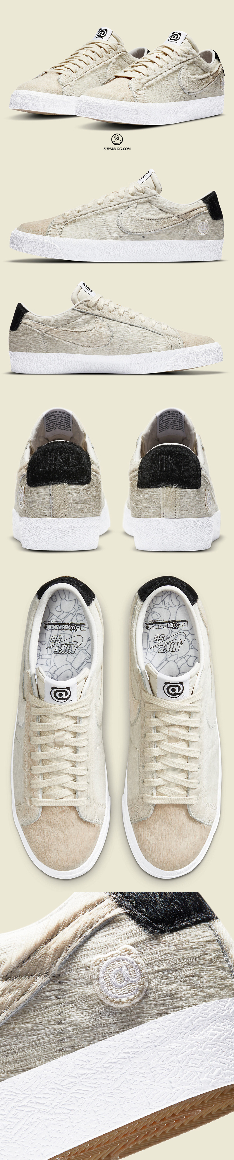Queste sono le immagini ufficiali della Medicom Toy x Nike SB Blazer Low, che a differenza del modello già citato, ha una tomaia beige.