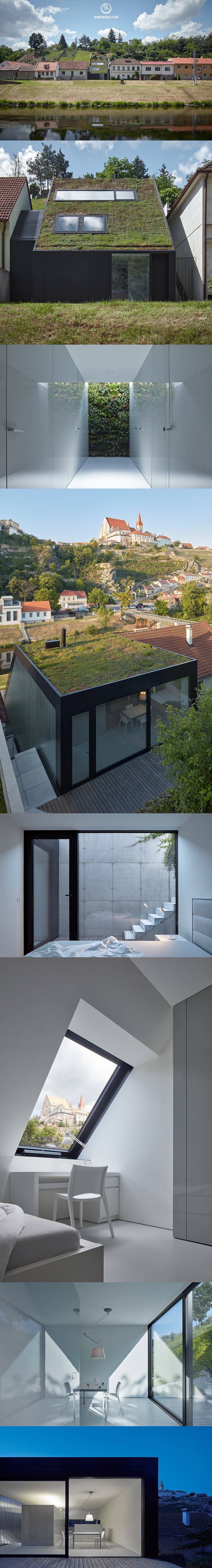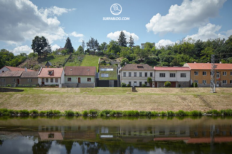 , in Repubblica Ceca per Norbert Walter. L’abitazione è ricoperta da verde, si estende per due piani e si affaccia sul fiume della città.