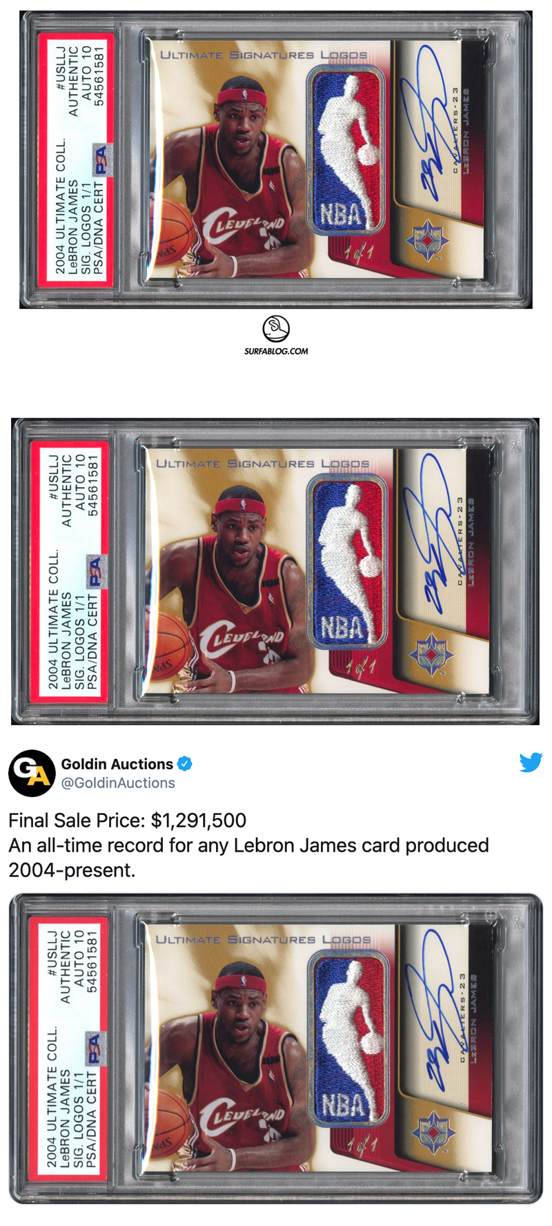 Goldin Auctions ha venduto una card 1/1 di LeBron James alla sua stagione del 2004 al prezzo record di 1.291.500 $.