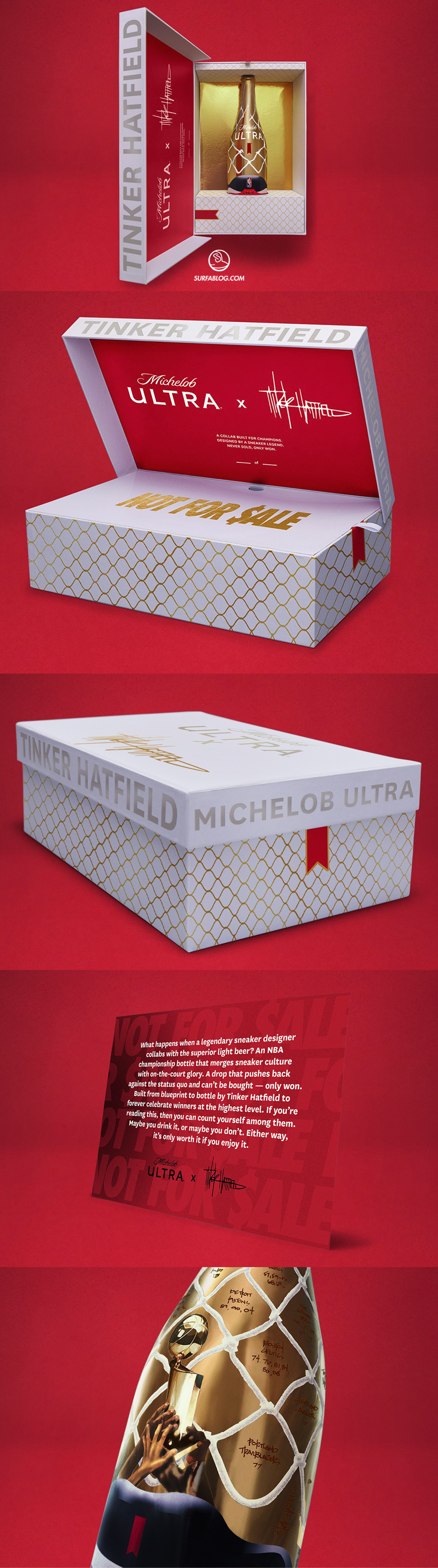 MicheLob ha collaborato con il leggendario designer di sneakers Tinker Hatfield per la realizzazione di questa bottiglia per celebrare il campionato NBA.