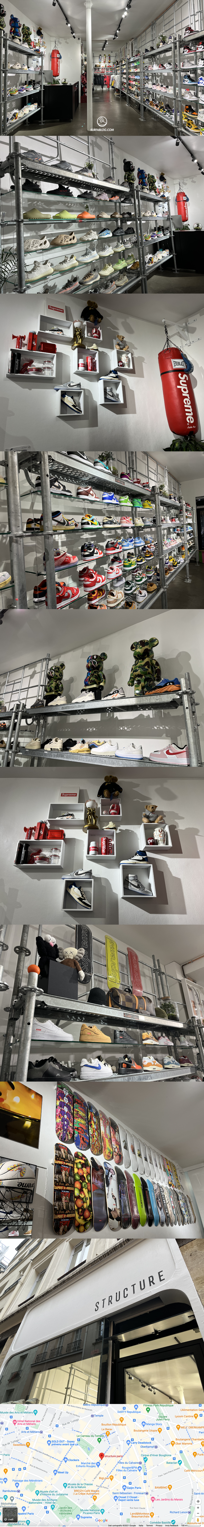 Structure è un negozio di resell nato nel 2018 a Parigi. Si estende su un piano e vende principalmente sneakers, prodotti Supreme e BE@RBRICKS.