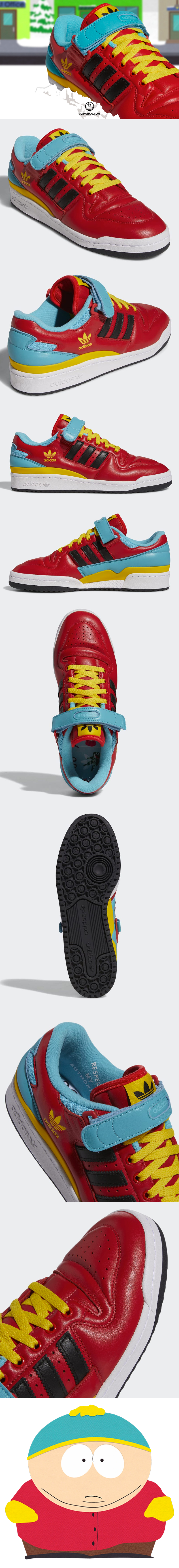 Dopo l’uscita della Campus 80 “Towelie”, della Stan Smith “Stan Marsh”, della NMD_R1 “Kenny”, della Superstar “Kyle”, della NMD_R1 V2 “Professor Chaos” e della Forum Low “Awesom-O”, eccovi oggi le immagini ufficiali della Forum Low “Cartman”. La scarpa prende ispirazione dall’outfit di “Eric Cartman”.