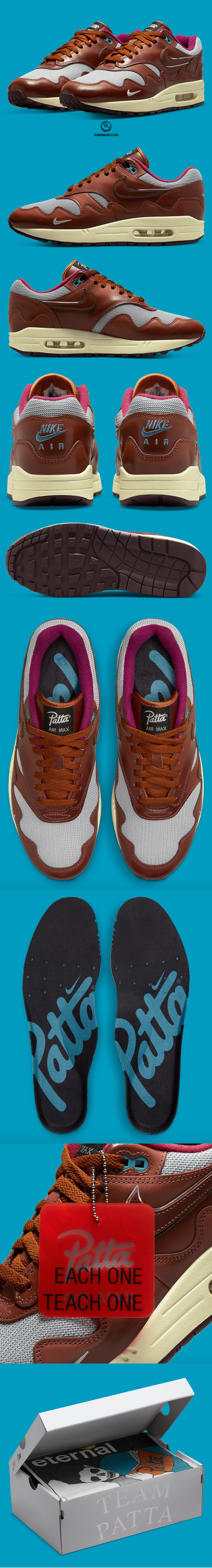 Dopo la “Monarch”, la “Noise Aqua”, la “Rush Maroon”, la “Black” e la “White” Patta e Nike hanno realizzato una sesta Air Max 1 chiamata “Brown”.