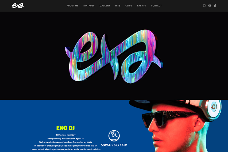 : About Me, Mixtapes, Gallery, Hits, Clips, Events.