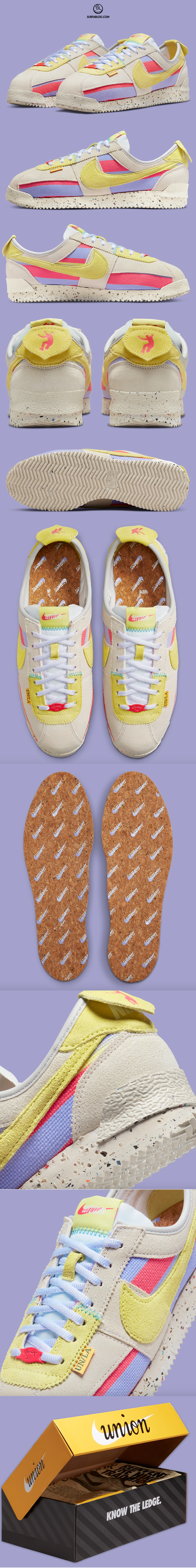 Dopo 2 Air Jordan 1, 4 Air Jordan 4, 2 Air Jordan 2, 2 Dunk Low e 3 Cortez, Union LA ha presentato una nuova sneaker con Nike. Si tratta della Cortez “Lemon Frost” che sarà disponibile da fine Luglio. Prezzo: 130 $.