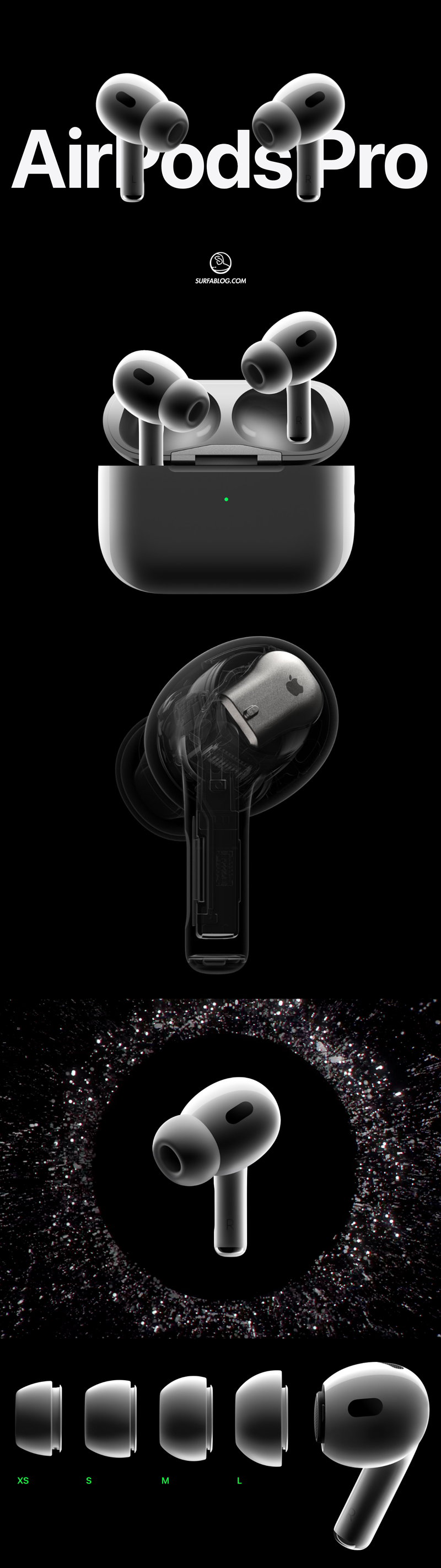 Le nuove AirPods Pro si basano sul chip H2, capace di far distinguere i suoni in modo ancora più dettagliato. La nuova esperienza di suoni è stata definita Spatial Audio e dovrebbe permettere all’ascoltatore di sentire il suono tutto intorno a sé.