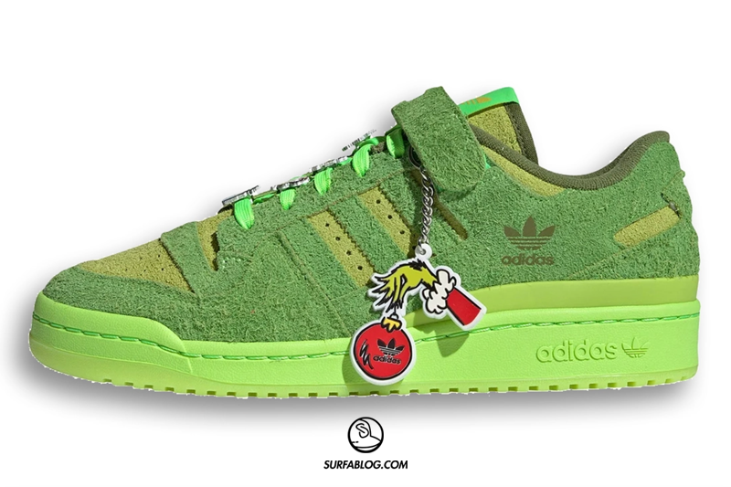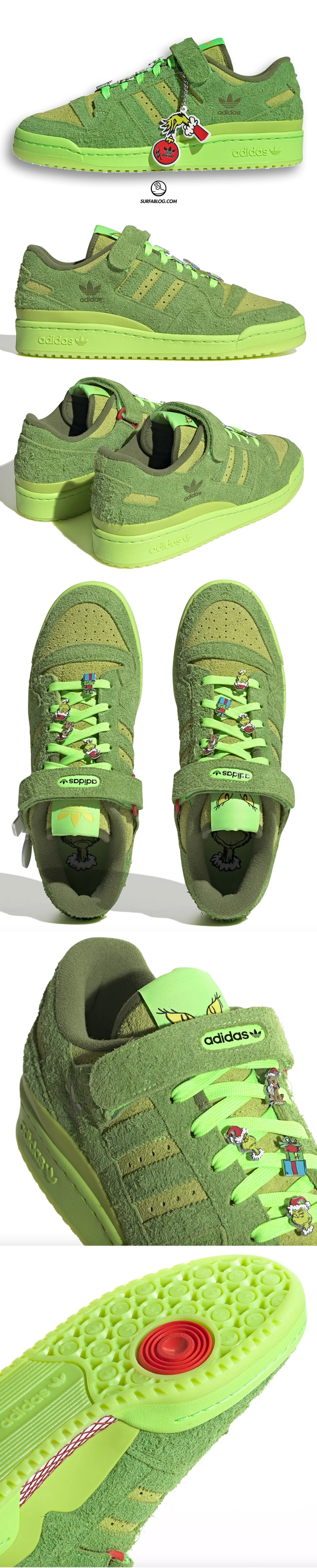 Per l’occasione adidas Originals ha realizzato una Forum Low dedicata al Grinch. Così come la Towelie, anche questa scarpa prende ispirazione dal personaggio del film.
