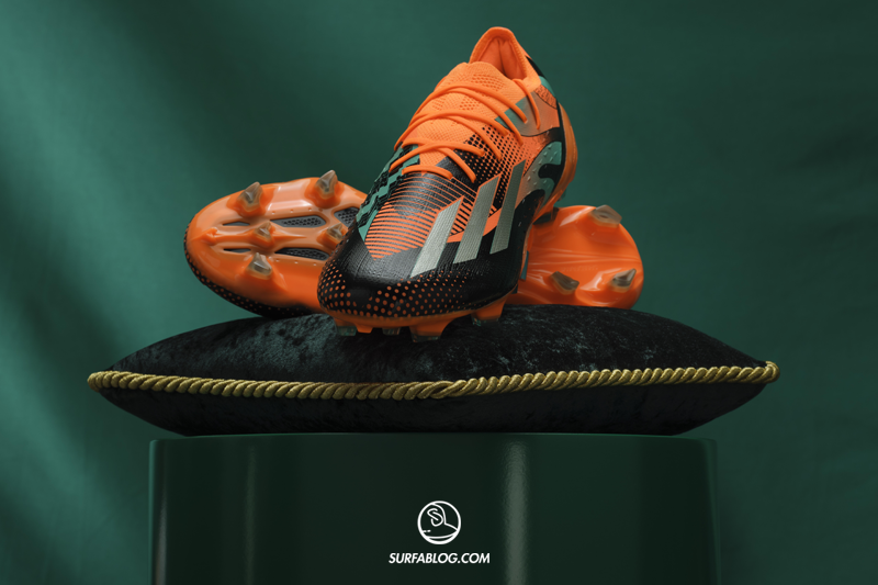 Il design espressivo e fluido, caratterizzato da una sorprendente colorazione arancione, nera e azzurra, si ispira all'incredibile storia di Leo nelle calzature a tre strisce. Presenta elementi grafici distintivi che saranno immediatamente riconoscibili dai fan che conoscono alcune delle sue scarpe adidas più iconiche del passato, come la f50.6, la Messi f50 adizero ´Mirosar 10´, la Messi15, la f50 adizero Messi 370 o la Messi16 Spacedust.