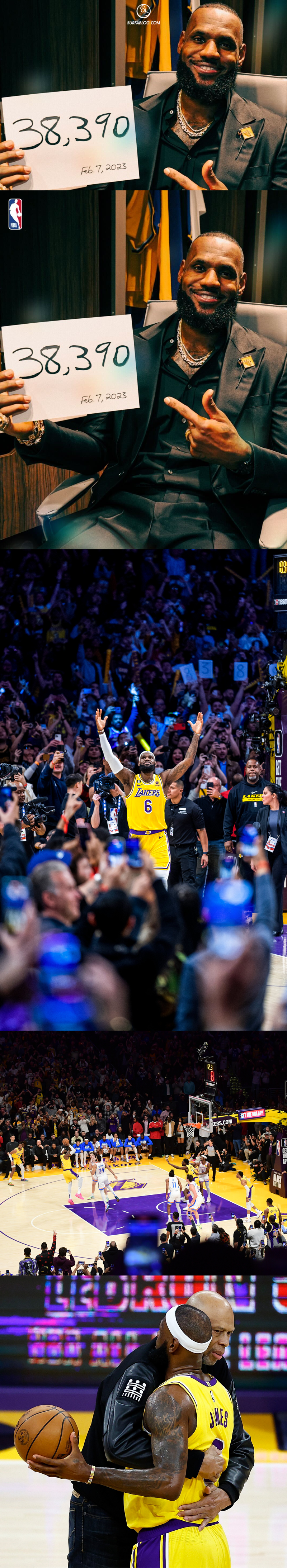 Jabbar era seduto a bordo campo ed è stato tra i primi a congratularsi con James. Jabbar ha impiegato 1.560 partite per arrivare a 38.387, mentre LeBron ne ha giocate 1.410 per superarlo (150 match in meno).