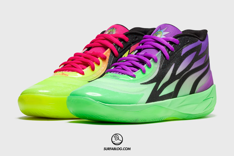 La scarpa in questione è dedicata a “Rick And Morty”, ed è una verde ed una rosa fluorescente.