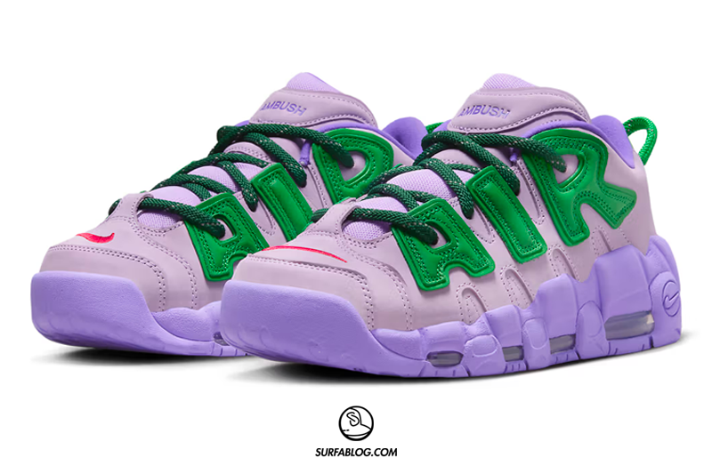 Continuano le collaborazioni tra Ambush e Nike. L’ultima novità è questa Air More Uptempo Low in colorazione “Lilac”.