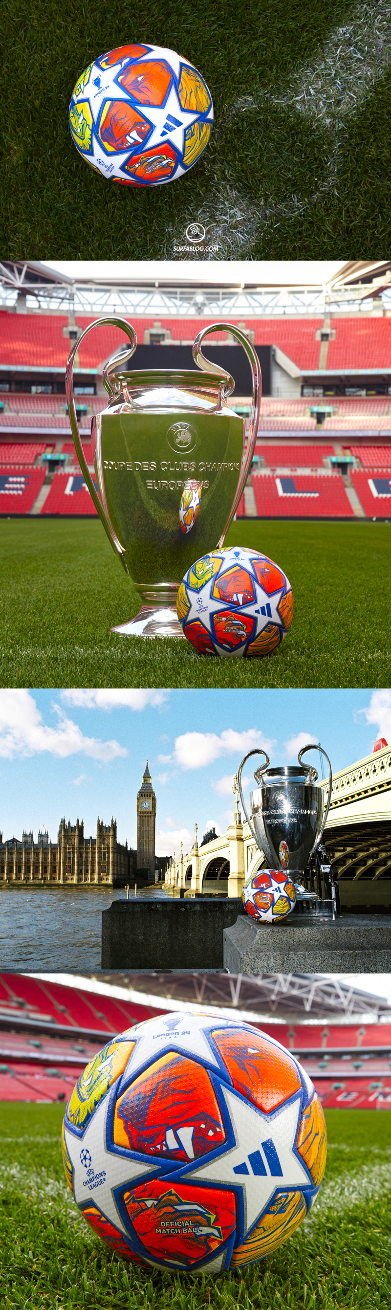 Realizzato per distinguersi sul più importante dei palcoscenici calcistici, questo pallone celebra l’anfitrione della finale, la città di Londra, con una grafica vibrante che raffigura 2 leoni ruggenti che combattono tra le stelle. Il leone è simbolo della ricca storia e cultura dell’Inghilterra e della sua capitale, ma rappresenta anche il coraggio e la forza dei giocatori e la maestosità del trofeo più ambito del panorama calcistico europeo.
