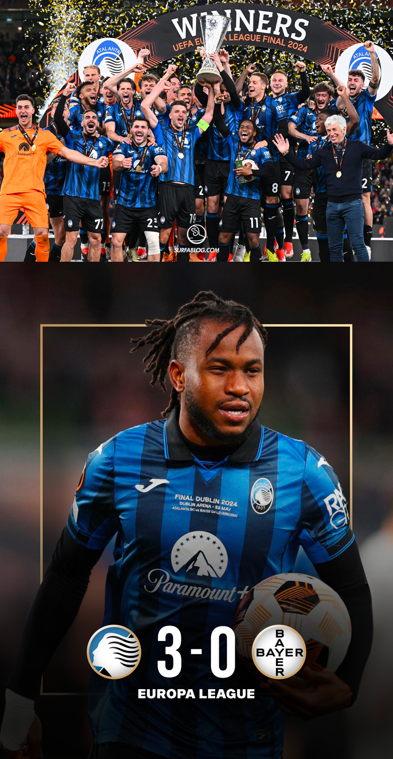 L’Atalanta ha vinto la sua prima UEFA Europa League, battendo in finale il Bayer Leverkusen 3 a 0.