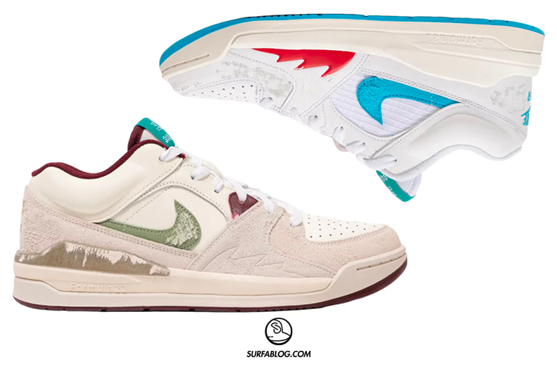 La scarpa è ispirata alla Formula 1 ed è stata realizzata in 2 colorazioni “Cream/Green” e “White/Aqua”.