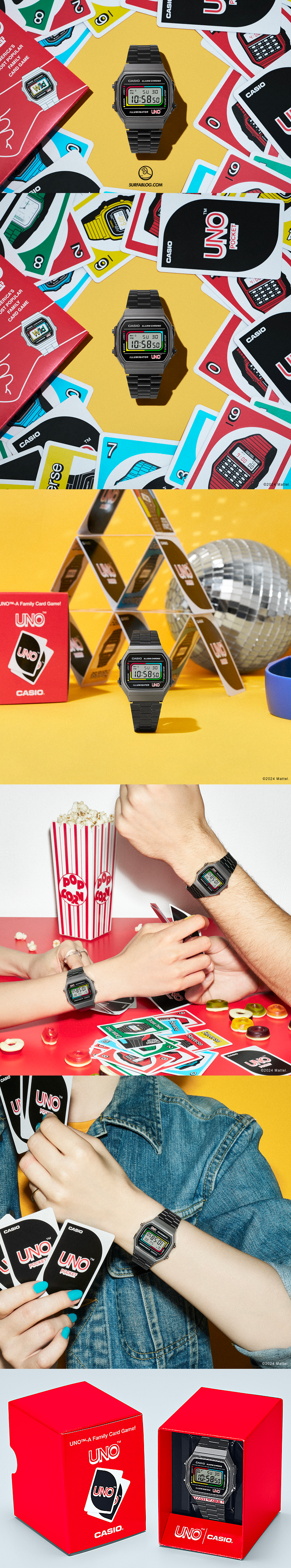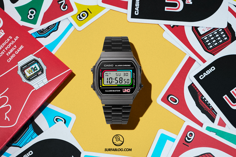 Casio ha collaborato con Mattel per questo A168 ispirato ad UNO, il gioco di carte più famoso di sempre.