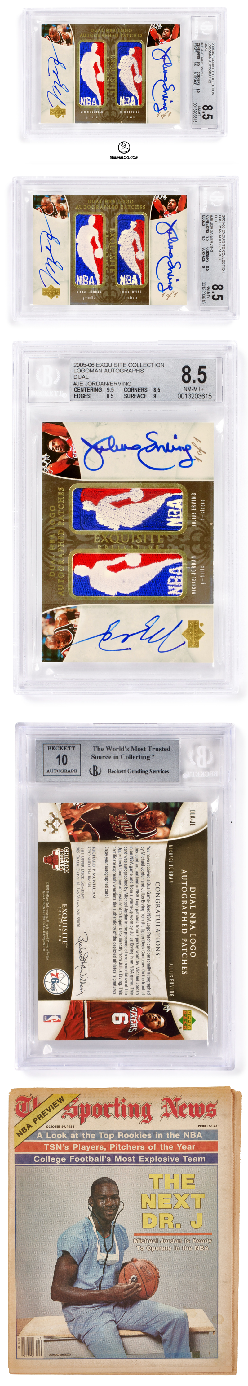 Nel numero del 29 Ottobre del 1984 di The Sporting News, Jordan è finito in prima pagina come “The Next Dr. J”. Sotheby’s ha messo in vendita la card del 2005/06 di Upper Deck con Michael Jordan e Julius Erving con il doppio Logoman e con il doppio autografo. La card è gradata 8.5 ed è in tiratura 1 di 1.