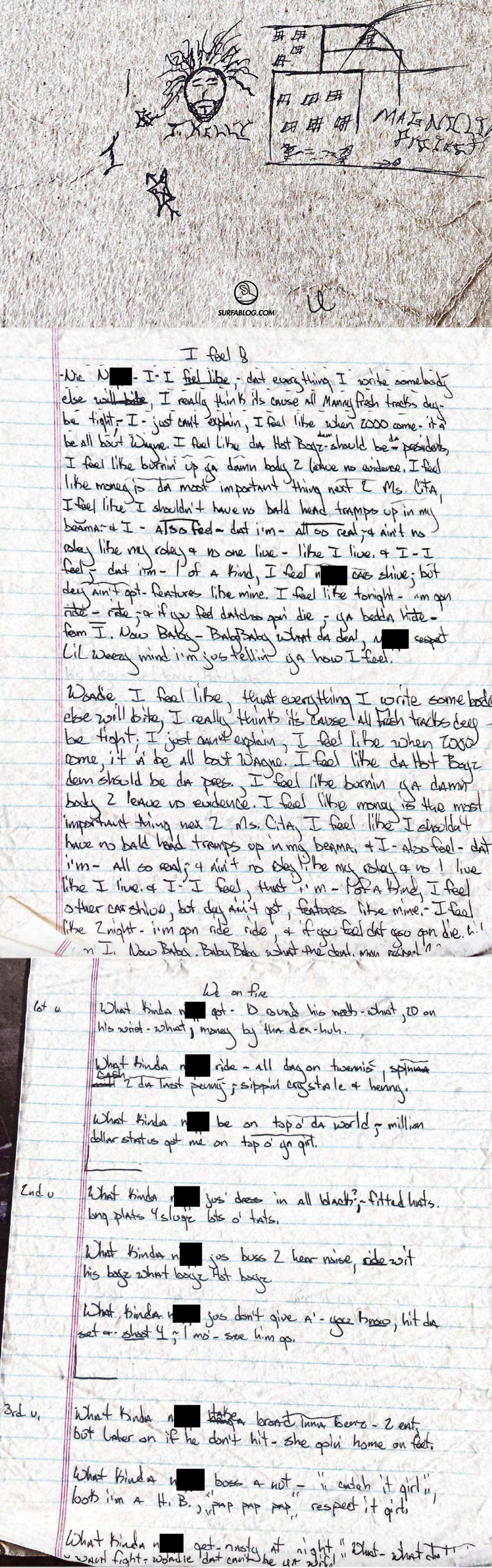 Il quaderno risale agli anni ’90, quando Weezy aveva 17 anni. Al suo interno ci sono i testi di “Grown Man”, contenuta in “The Carter II” e “We On Fire” degli Hot Boys.