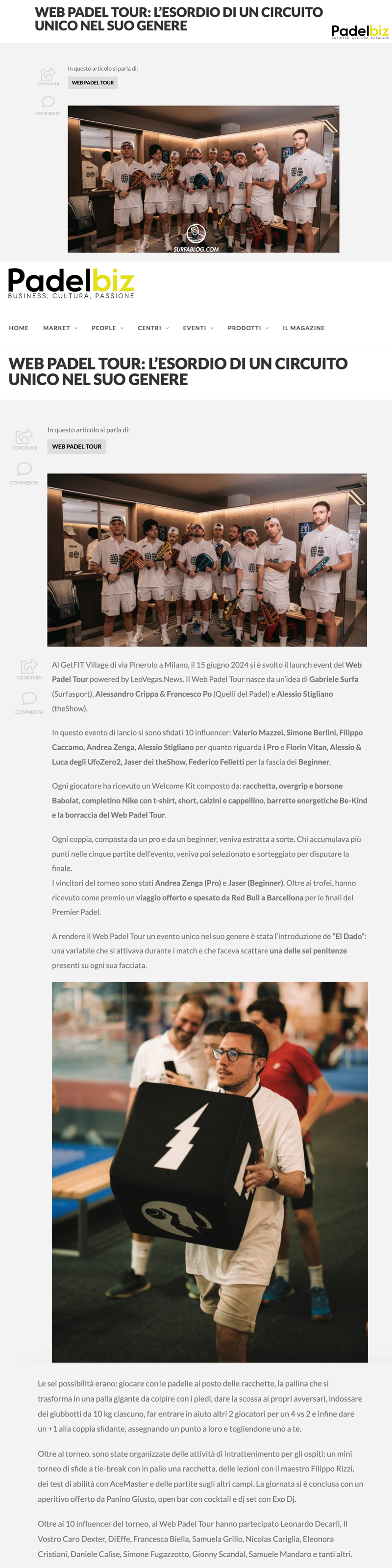 PADELBIZ: WEB PADEL TOUR, L’ESORDIO DI UN CIRCUITO UNICO NEL SUO GENERE