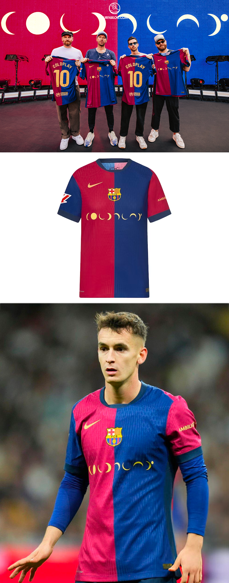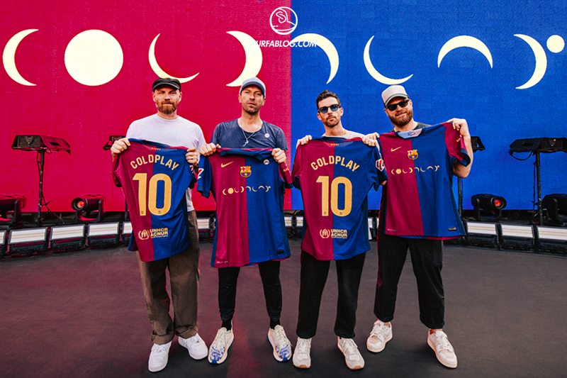 Nell’Ottobre 2024, il quinto a comparire sulle divise del Barça sono stati i Coldplay con il logo del loro album “Moon Music”.