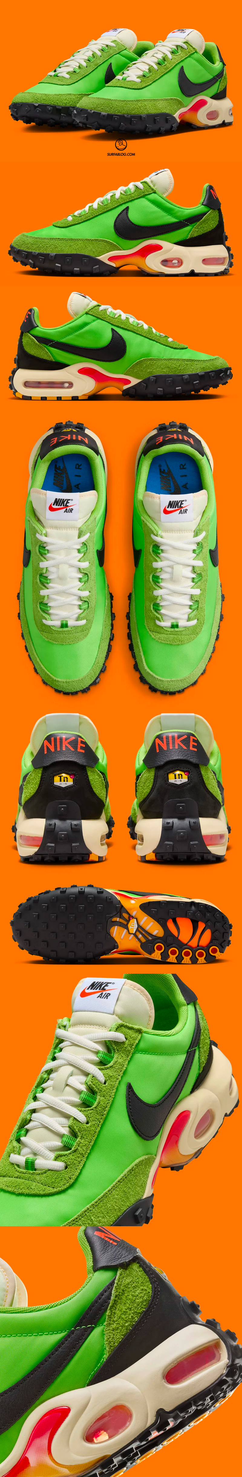 La scarpa combina lo stile della Waffle Racer del 1970 con quello della Air Max Plus del 1998.