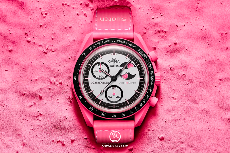 Il modello di oggi è il Mission to the Pink Moonphase, disponibile dal primo Aprile presso i negozi Swatch al prezzo di 310 $.