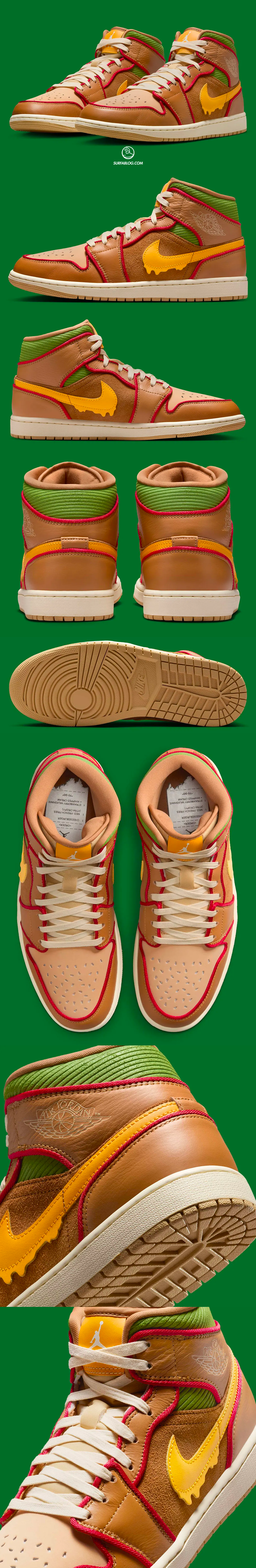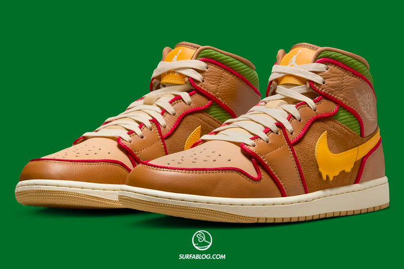 Dopo le AJ1 Low & Mid “Peanut Butter & Jelly”, la AJ1 Mid “French Fries” e la AJ1 Low “Strawberry Milkshake”, Jordan Brand ha presentato la Air Jordan 1 Mid “Cheeseburger”.