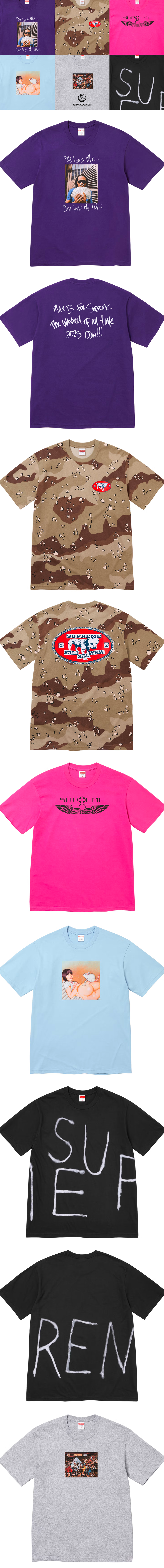 Per la Primavera 2025, Supreme ha realizzato 6 nuove t-shirts.
