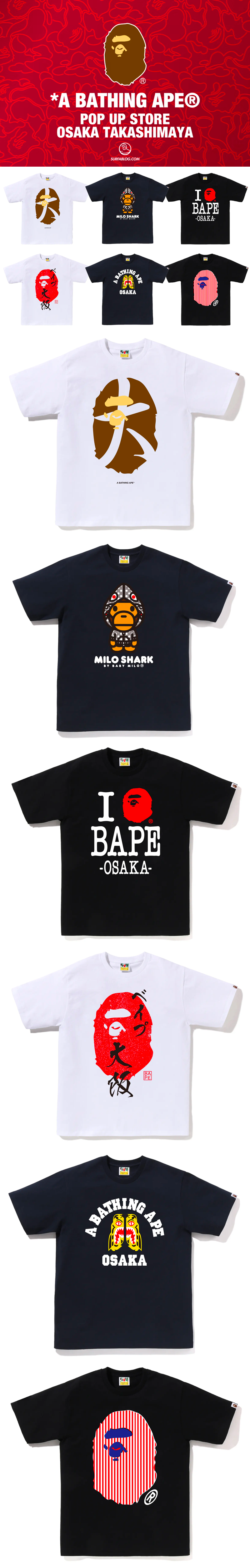 Le 6 maglie sono: APE Head Osaka Tee, Milo Shark Osaka Tee, I Love BAPE Osaka Tee, Japanese Stamp Osaka APE Head Tee, Tiger College Osaka Tee e Osaka APE Head Tee.