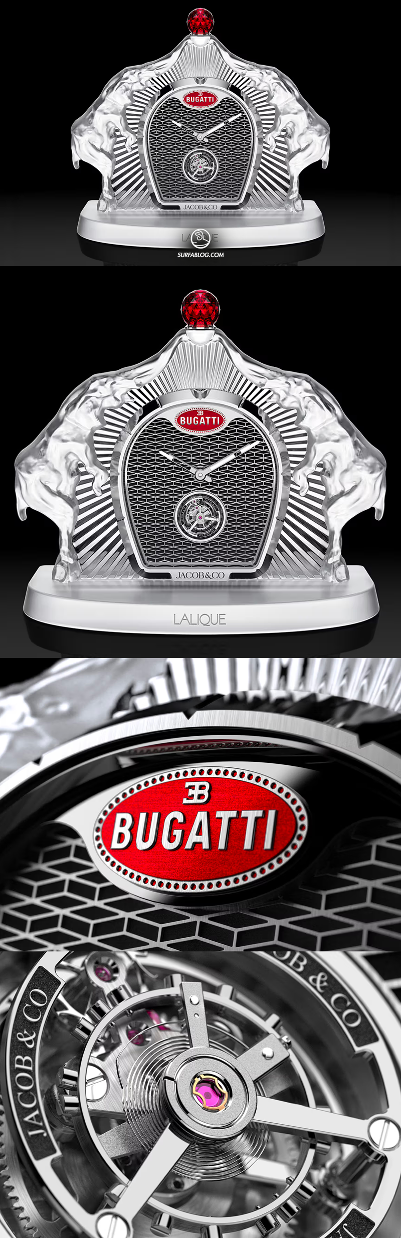 Jacob & Co. ha collaborato con Bugatti e Lalique per questo Calandre Clock.