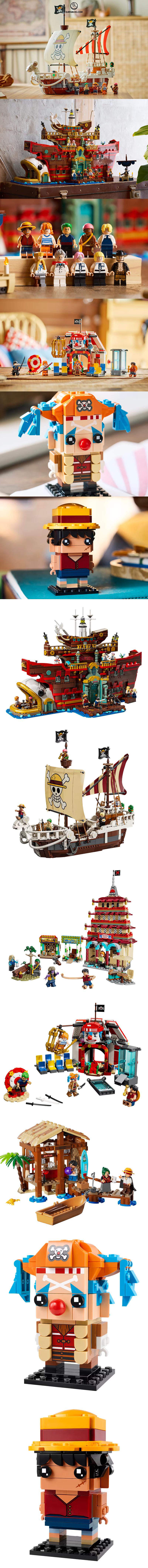 LEGO ha realizzato 2 set "Going Merry Pirate Ship", composto da 1.376 mattoncini e "Baratie Floating Restaurant" composto da 3.402 mattoncini.