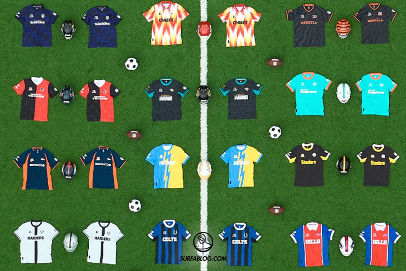 La capsule trasforma le maglie da Football Americano in jersey da Calcio, reinterpretando le divise dei 32 club NFL.