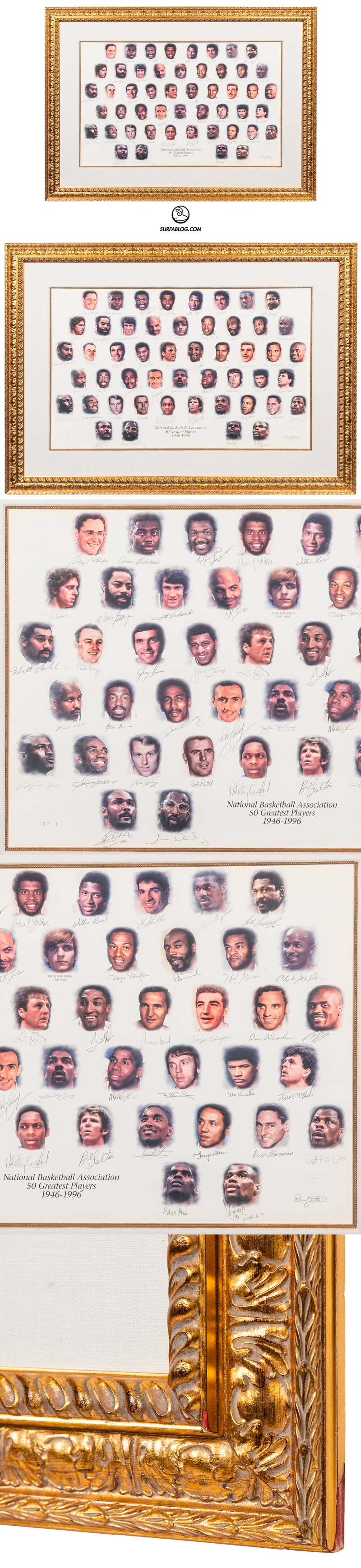 Qui di seguito la lista di tutti i nomi presenti nel quadro: George Mikan, Oscar Robertson, Elvin Hayes, Kareem Abdul-Jabbar, Willis Reed, John Stockton, Hakeem Olajuwon, Bill Russell, Dave Cowens, Walt Frazier, John Havlicek, Charles Barkley, Elgin Baylor, Nate Thurmond, Hal Greer, Clyde Drexler, Wilt Chamberlain, Paul Arizin, Jerry Lucas, George Gervin, Larry Bird, Scottie Pippen, Jerry West, Dolph Schayes, Dave DeBusschere, Shaquille O’Neal, Moses Malone, Earl Monroe, Dave Bing, Bob Cousy, Julius Erving, Magic Johnson, Billy Cunningham, Wes Unseld, Kevin McHale, Michael Jordan, Sam Jones, Rick Barry, Bob Pettit, Nate Archibald, Bill Walton, Isiah Thomas, Lenny Wilkens, Bill Sharman, Patrick Ewing, Karl Malone, James Worthy, Robert Parish, David Robinson e David Stern.