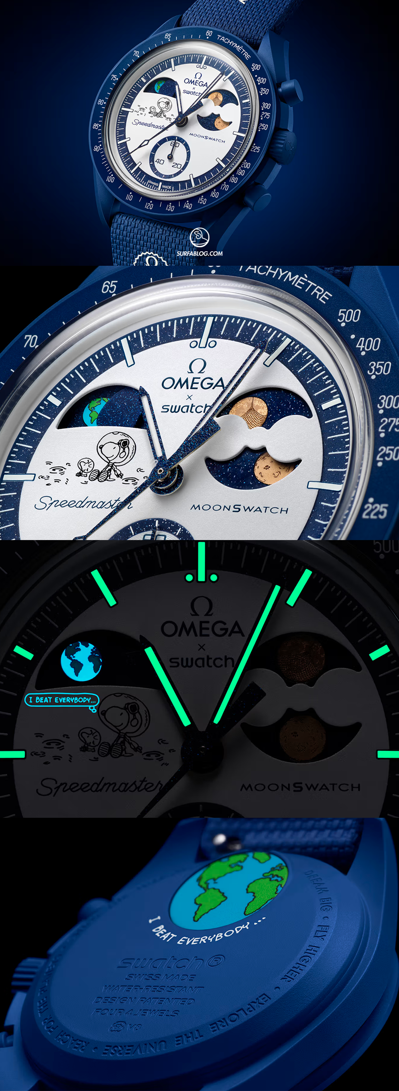 Il modello di oggi è il Mission to Earthphase Moonshine, con Snoopy e Woodstock ed disponibile da oggi 9 Agosto presso i negozi Swatch al prezzo di 400 $.