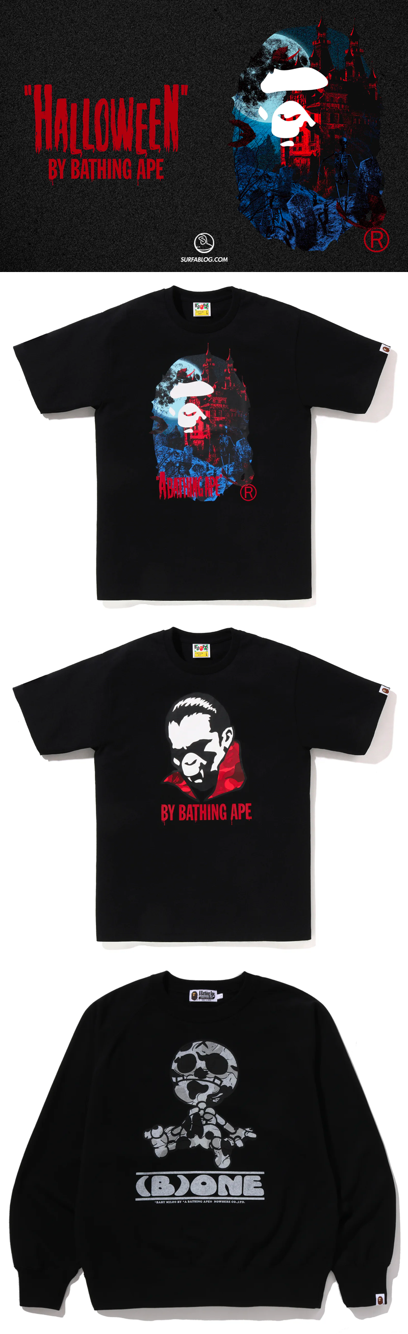 La capsule è composta da: Vampire Castle Ape Head Tee, Bape Vampire Tee, Milo Bone Relaxed Fit Crewneck Sweatshirt.