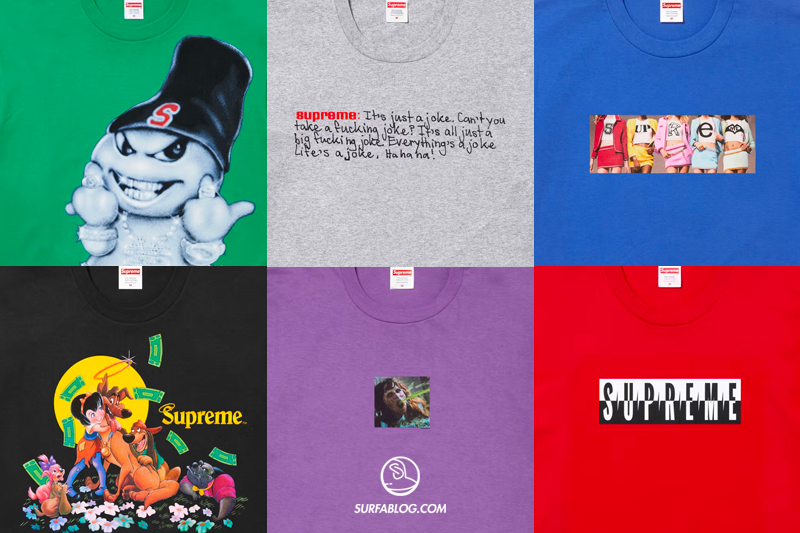 Le tees sono disponibili da oggi negli store e sul sito Supreme.